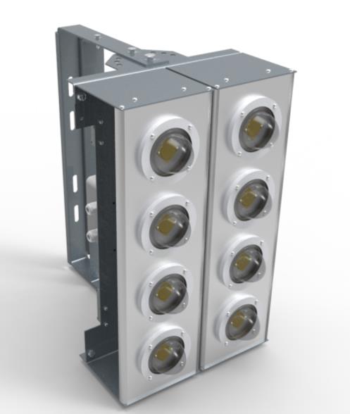 Светильник светодиодный ПСО-03-350-01,02-УХЛ1 модульной конструкции, предназначен для установки на осветительных вышках компрессорных станций, предприятий атомной промышленности, а так же в решении задач в освещении большой площади (стадионы и т.д.).